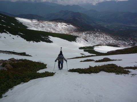スキ− 2台かつぐ人