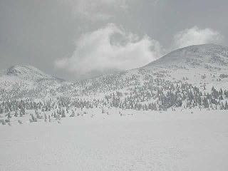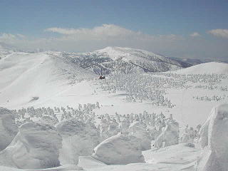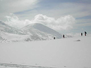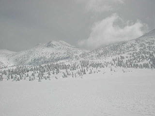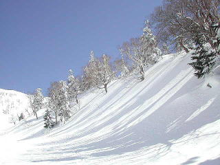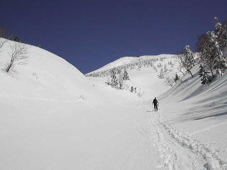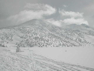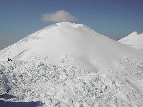Yは頂上を踏んだあと火口壁をすべり、登りかえして大岳大斜面を滑る