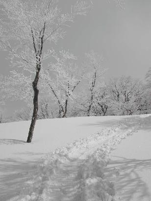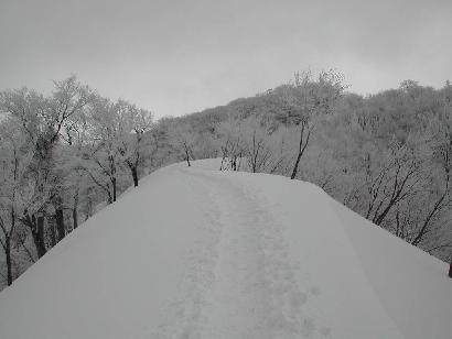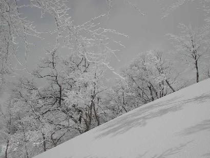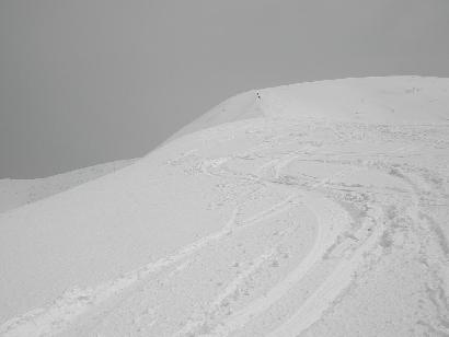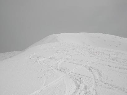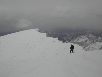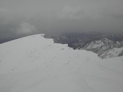 大岳から袴岳に連なる大雪庇は日本一ともいわれ壮大なスケールを誇る